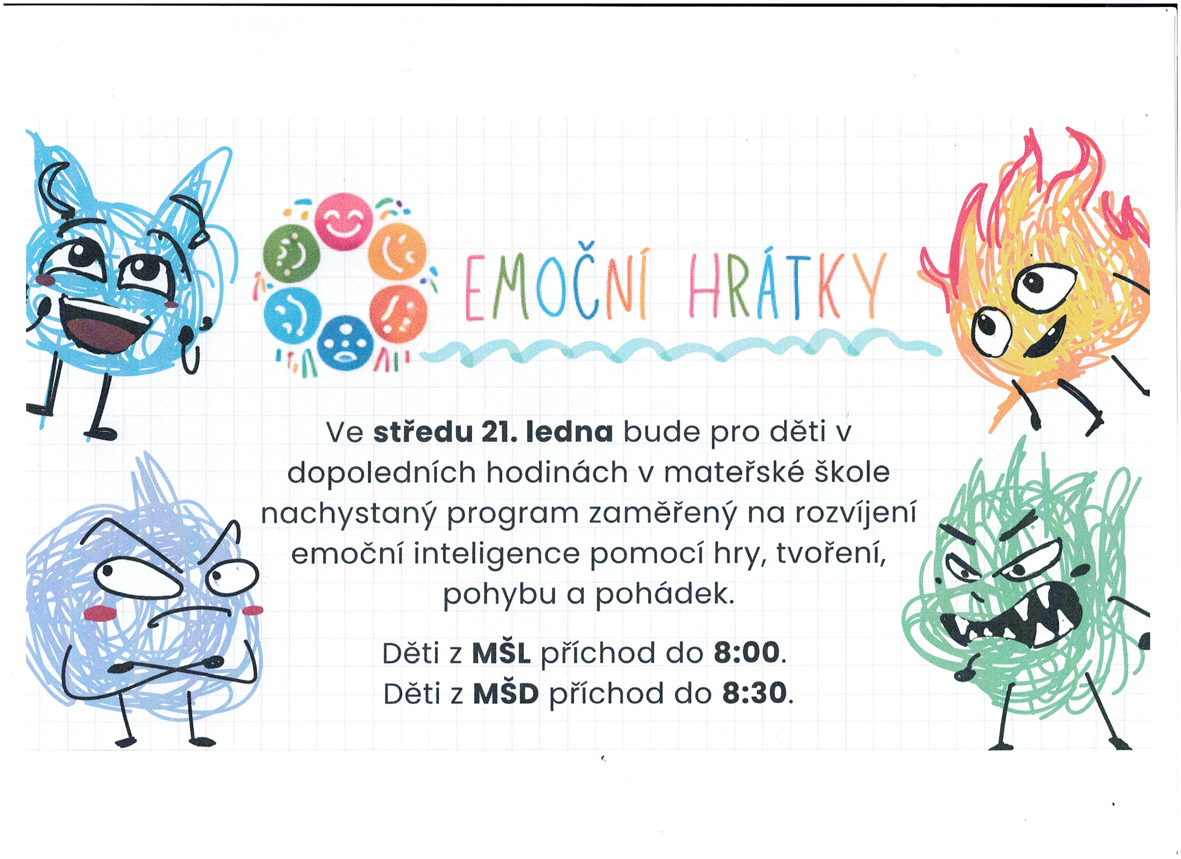 Zápis do 1. ročníku pro školní rok 2026/2027 se koná v pondělí 26. ledna 2026 od 14.00 do 18.00 h. v modulární ZŠ Drahanovice (u hřiště) Do 1. třídy ZŠ musí rodiče v lednu 2026 zapsat děti narozené v termínu od 1. 9. 2019 do 31. 8. 2020 a děti, které v předešlém školním roce dostaly odklad