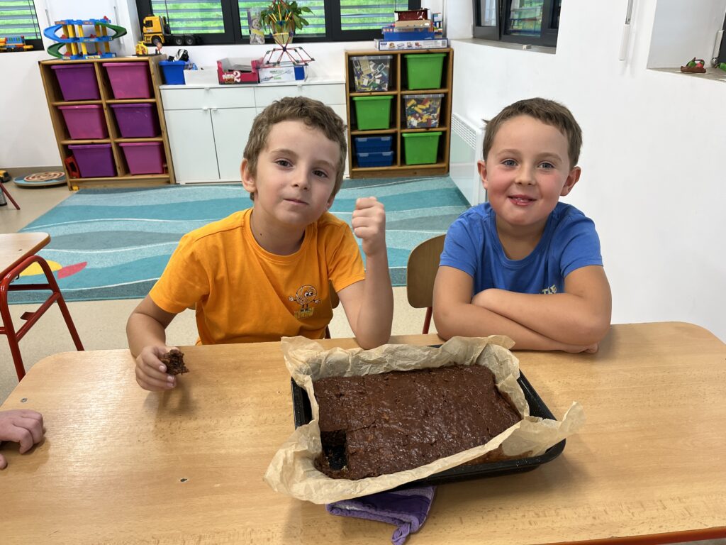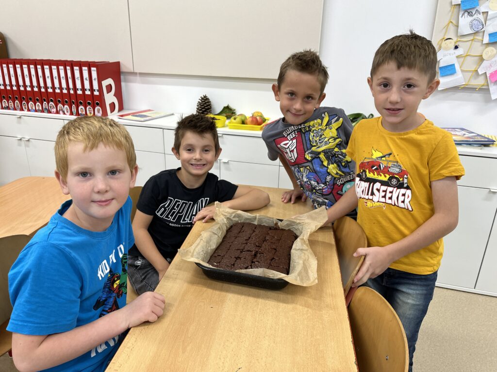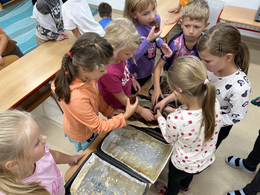 Děti si pečení náramně užily! A výsledek? Ten byl skvělý! Naši malí cukráři se nakonec podělili o své dobroty i s kamarády z jiných tříd, kteří jejich práci ohodnotili na 10 bodů z 10. Obrovskou pochvalou pro děti byly prázdné plechy a prvňáčci tak mohou být na sebe právem hrdí.